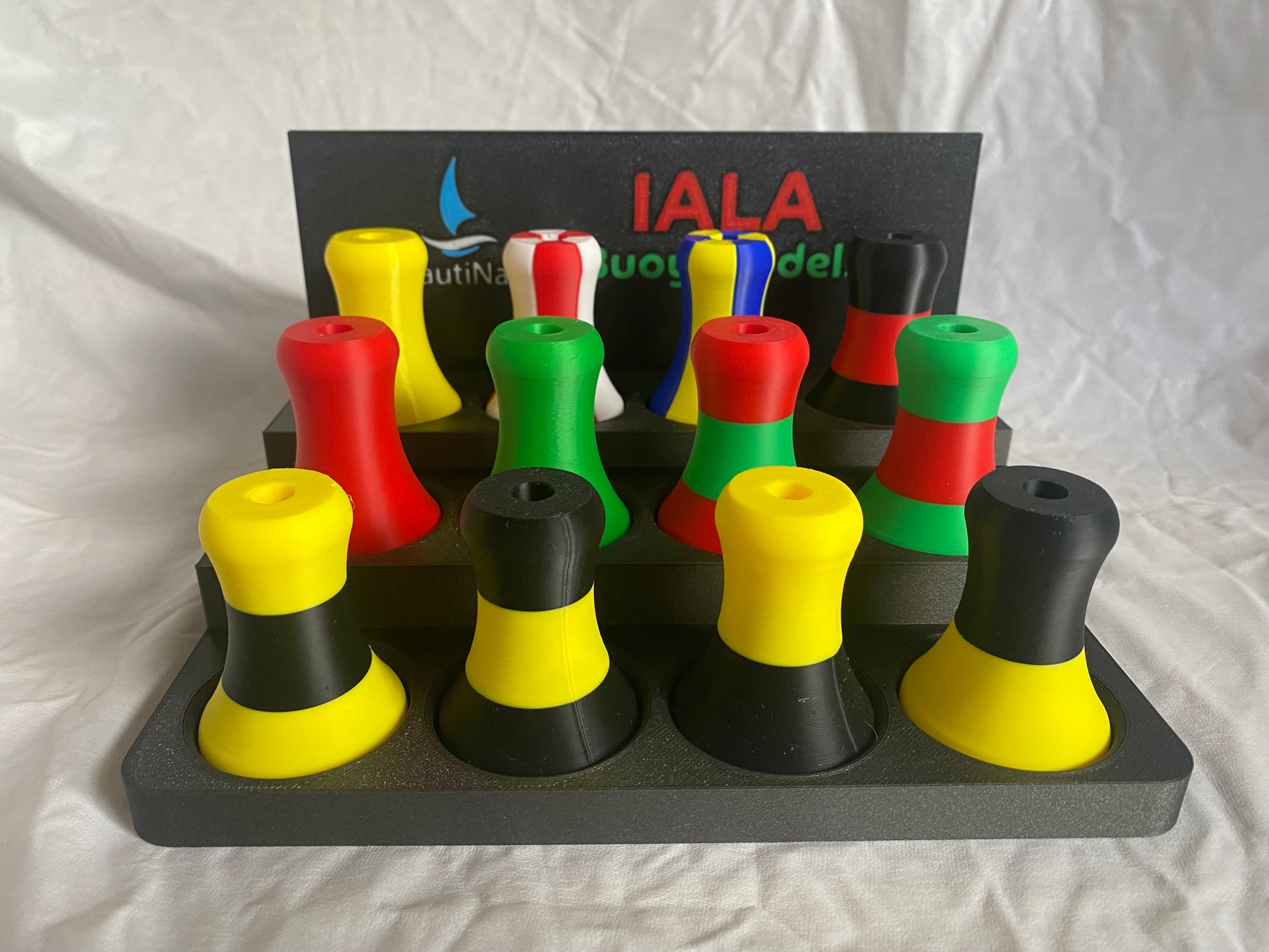 The kit features all 12 buoy shapes in the IALA system, and can be supplied with the top marks if you need them, the top marks are the same as in our standard set so there is no need to purchase them twice!