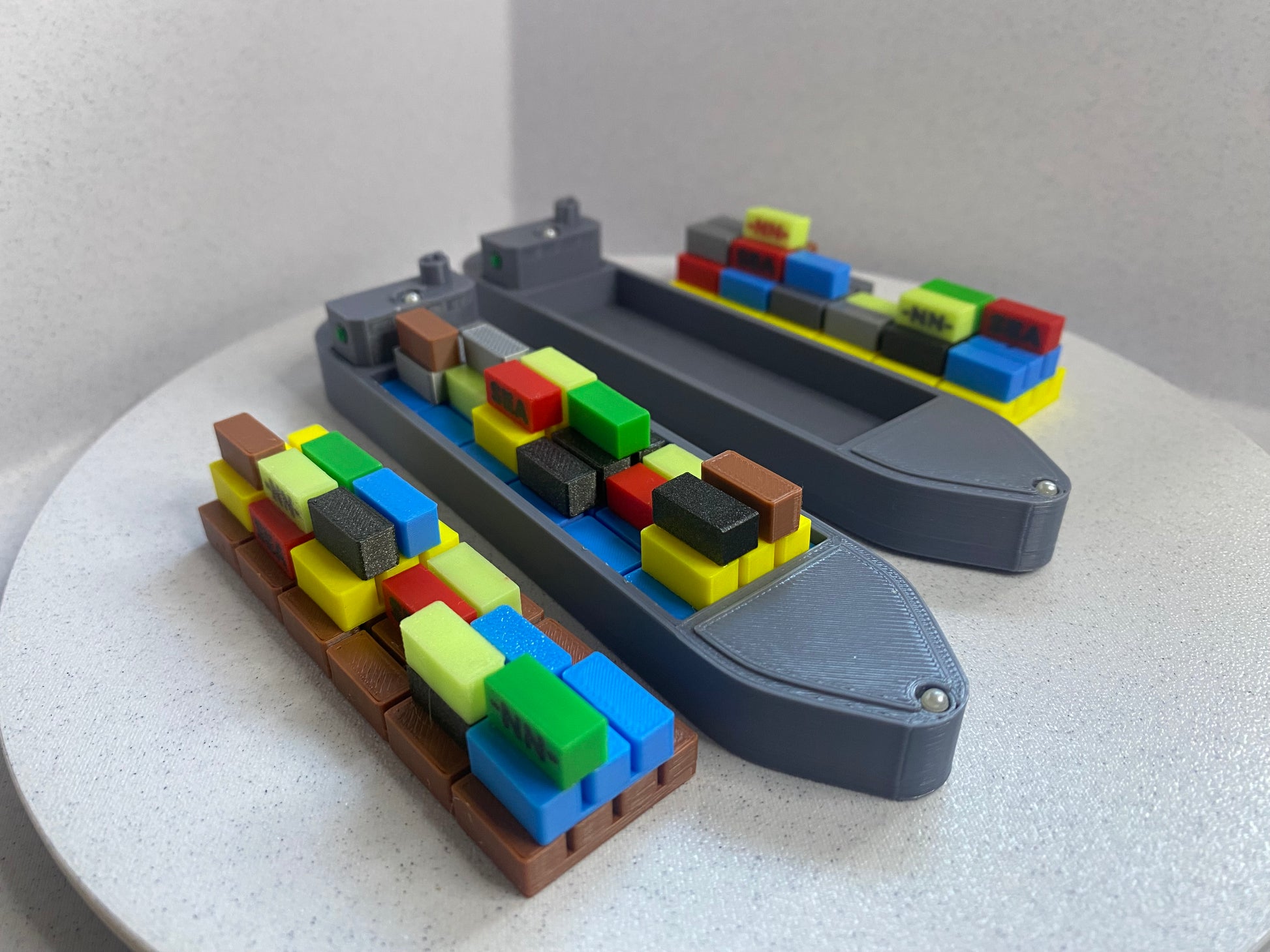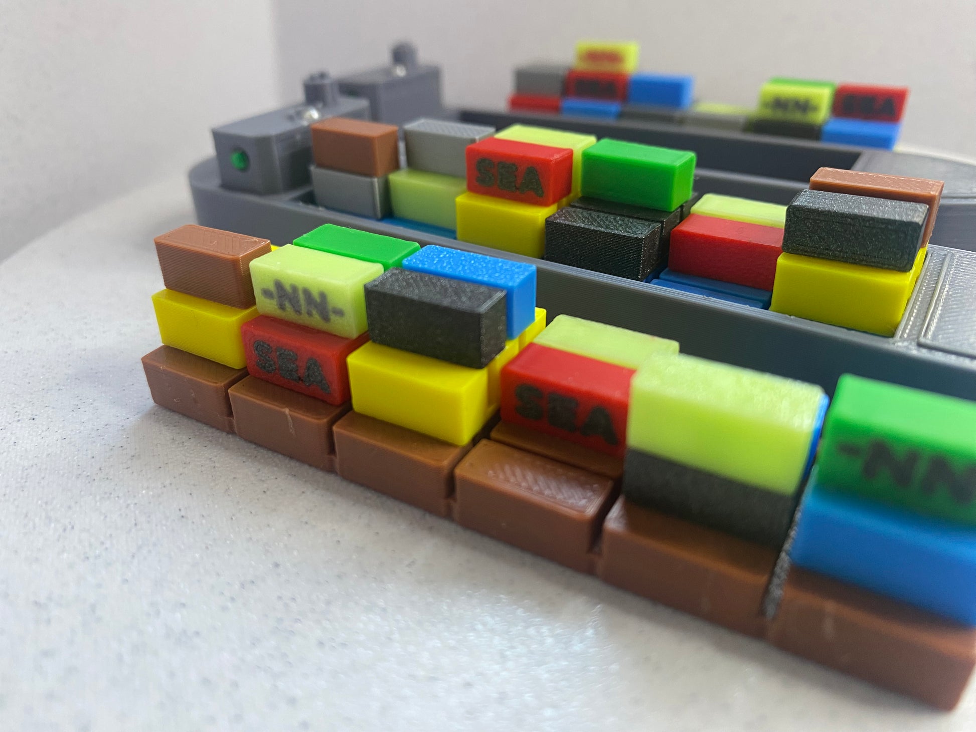 Note: The actual colours and placement of the containers will vary as we assemble them by hand. The ship model shown in the images is for scale purposes only - it is not included.