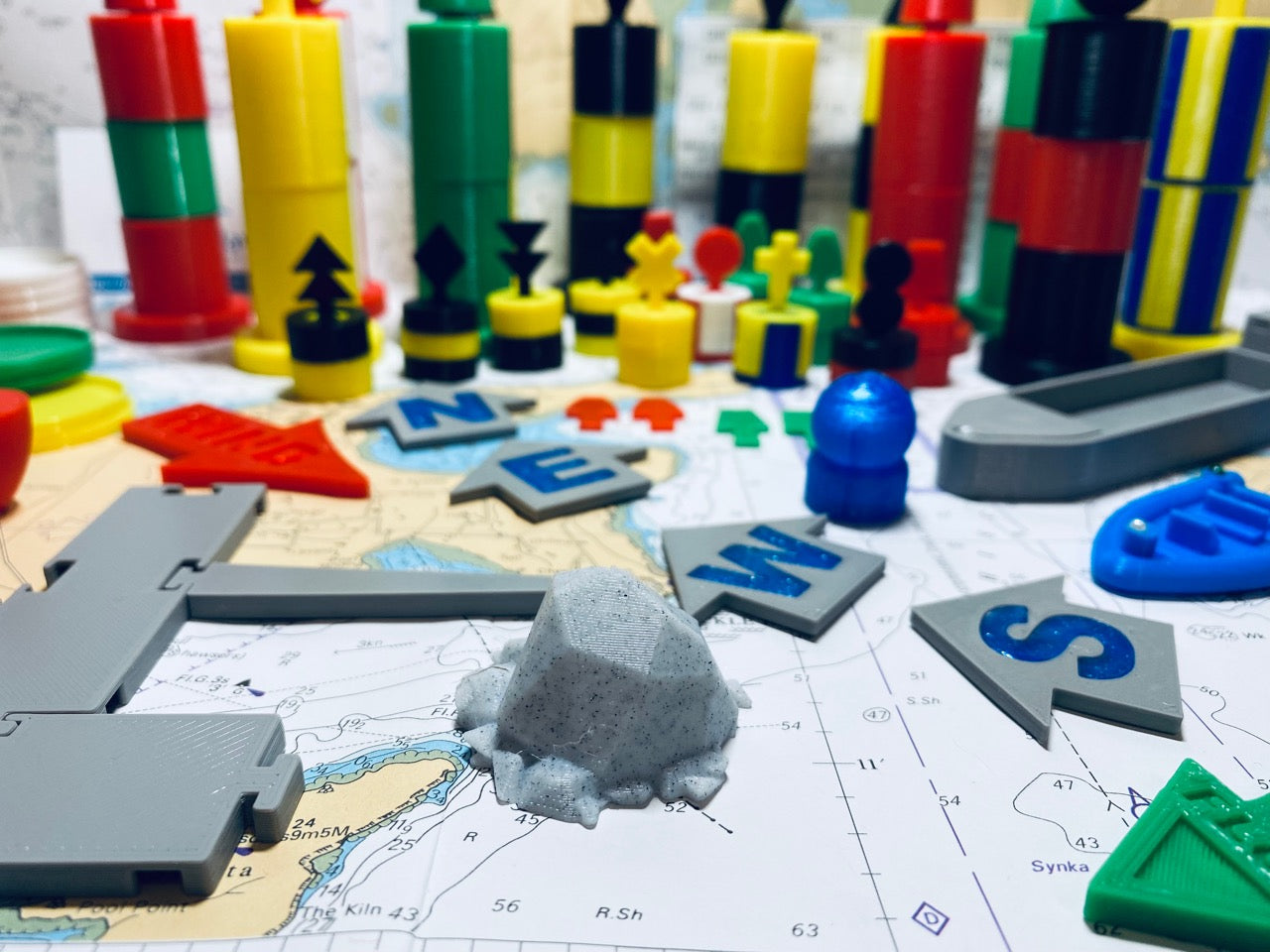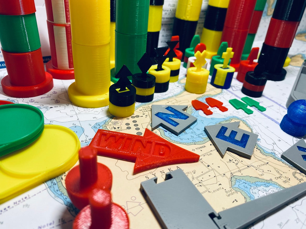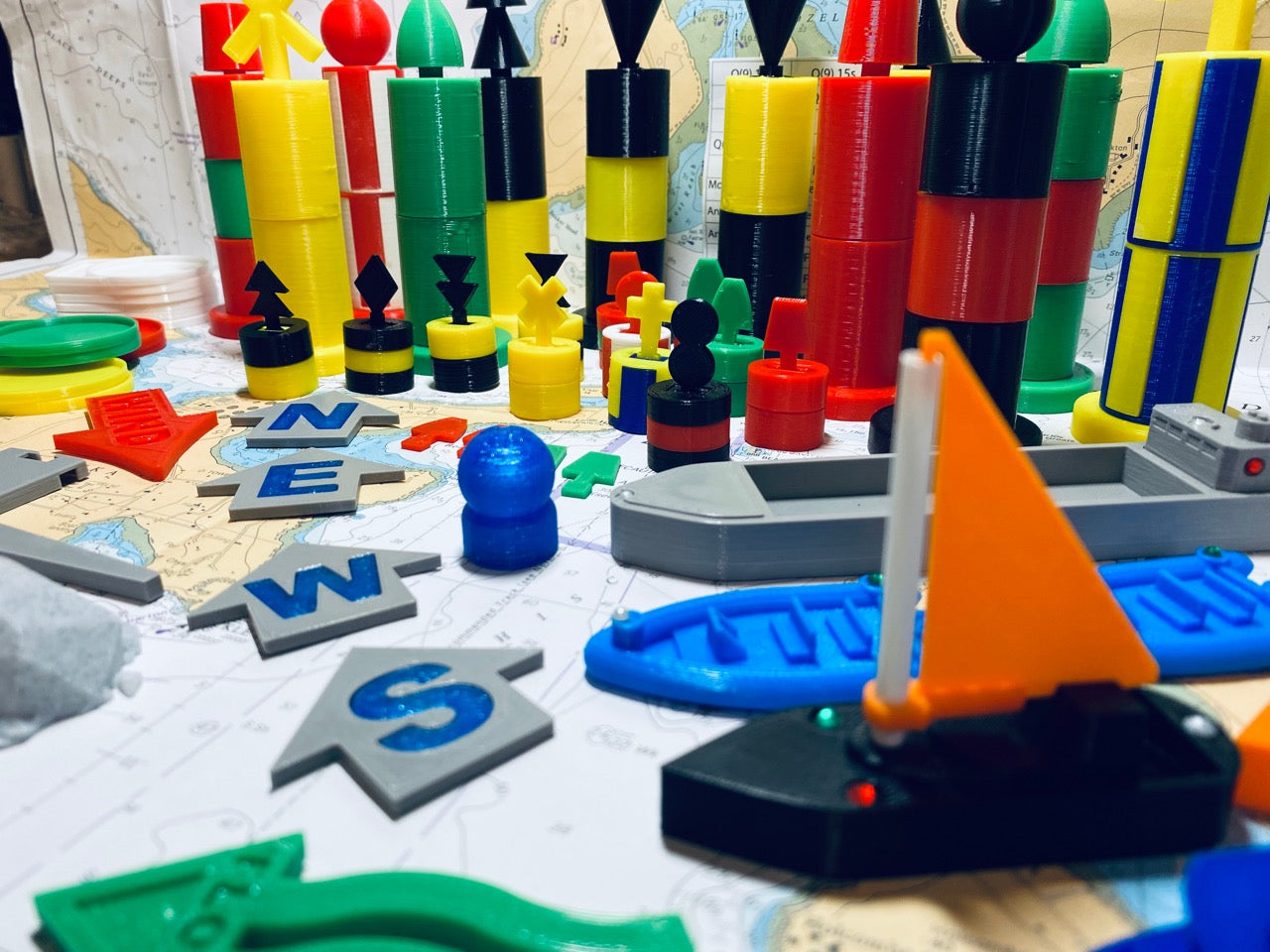 This is the Sea School complete IALA Buoy pack for Instructors, containing all twelve IALA-specific buoys (with BOTH Region A or B top shapes), plus the ‘light shoes’ and a sticker sheet for light characteristics – this set covers the vast majority of the cases that we encounter. This set also contains pilotage models and wind/current indicators from our pilotage system.